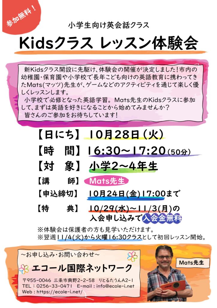 Kidsクラス(小学生対象の英会話クラス)の新規クラス開設に向けたレッスン体験会の開催が決定しました!